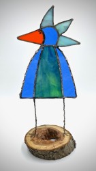 Jarabák je vytvořen technikou Tiffany a cínování. Modré sklo na křídlech a hlavě krásně propouští sluneční paprsky nebo jiný zdroj světla.